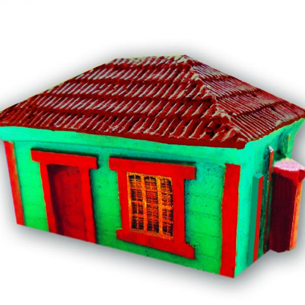 Casa rustica, techo 2 aguas, 6 cm. X 4 cm. X 4 cm.